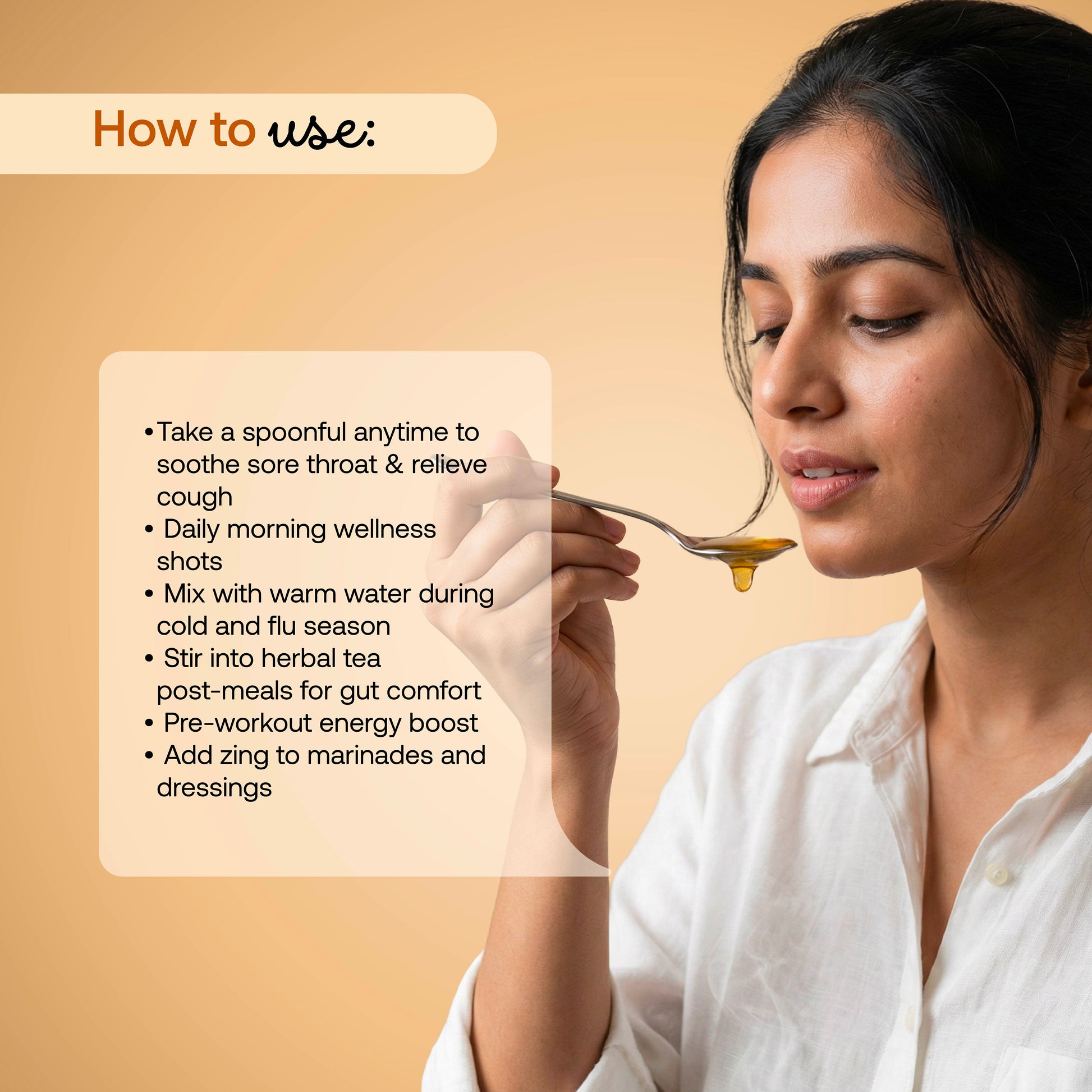 This golden elixir is more than just delicious—it's a powerhouse of health benefits. The combination of Himalayan honey and ginger creates a natural remedy that supports immunity, aids digestion, reduces inflammation, and promotes respiratory health. Rooted in ancient Ayurvedic wisdom, this blend has been trusted for centuries to soothe, heal, and energize.