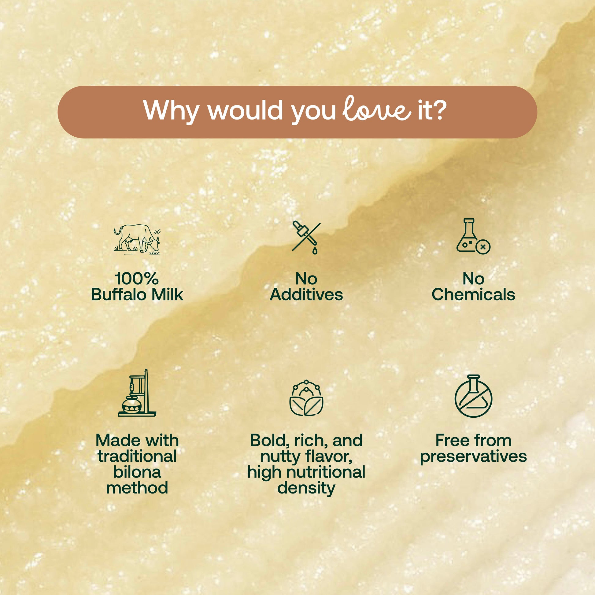 Experience the rich, authentic taste of our premium Desi Buffalo Ghee, handcrafted using traditional bilona methods that have been perfected over generations.